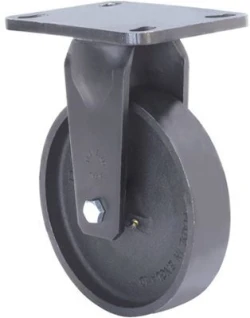 Fabricada con acero forjado hasta 10 m/m de espesor. Acabado pintado negro. Combinación de cojinetes cónicos y rodillos en el soporte. Cabezal giratorio hermético, con engrasadores en el cabezal del soporte y en la rueda. Fabricadas según normas europeas EN 12532/12533.