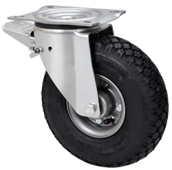 Chapa de acero embutida. Acabado cincado brillante. Buena amortiguación a los golpes. Baja resistencia a la rodadura en suelos irregulares. La cámara de aire protege el piso.