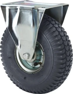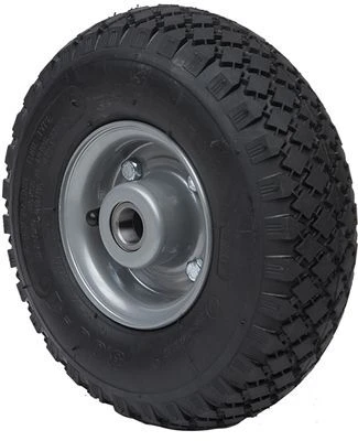 Ruedas color negro, con llanta de poliamix y cubierta neumática de 4 y 6 lonas especialmente indicadas para soportar cargas hasta 220 Kg.