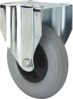 Ruedas impinchables color gris, con llanta de polipropileno y cubierta elástica maciza especialmente indicadas para soportar cargas hasta 75 Kg.