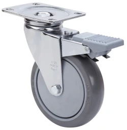 Fabricada con chapa de acero hasta 2,5 m/m de espesor. Soporte con doble rodamiento a bolas con pistas complementarias endurecidas. Acabado cincado cromado. Gran variedad de fijaciones, frenos, ruedas. Fabricadas según normas europeas EN 12530.