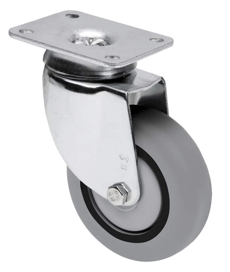 Ruedas de goma gris inyectada. Especialmente indicadas para soportar cargas hasta 80 Kg.