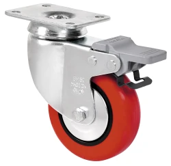 Ruedas de poliuretano rojo inyectado. Especialmente indicadas para soportar cargas hasta 100 Kg.