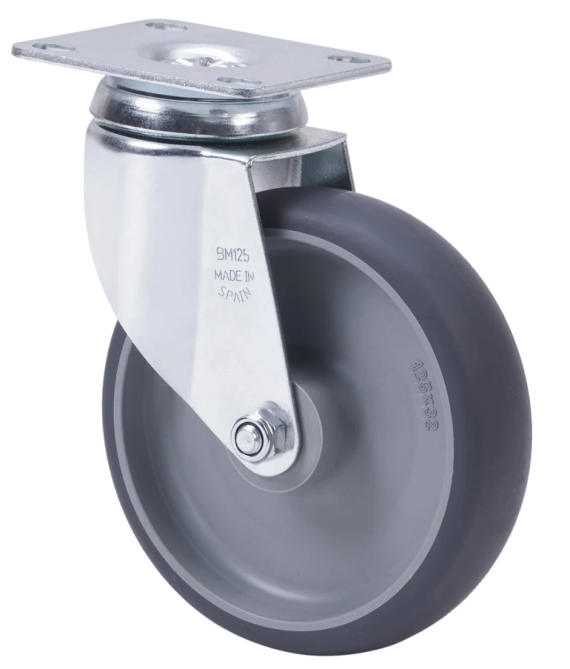 Ruedas de goma gris inyectada. Especialmente indicadas para soportar cargas hasta 90 Kg.