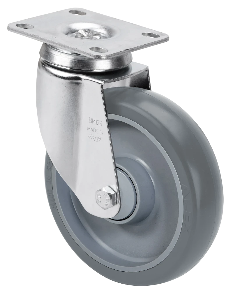 Ruedas de goma gris inyectada. Especialmente indicadas para soportar cargas hasta 100 Kg.