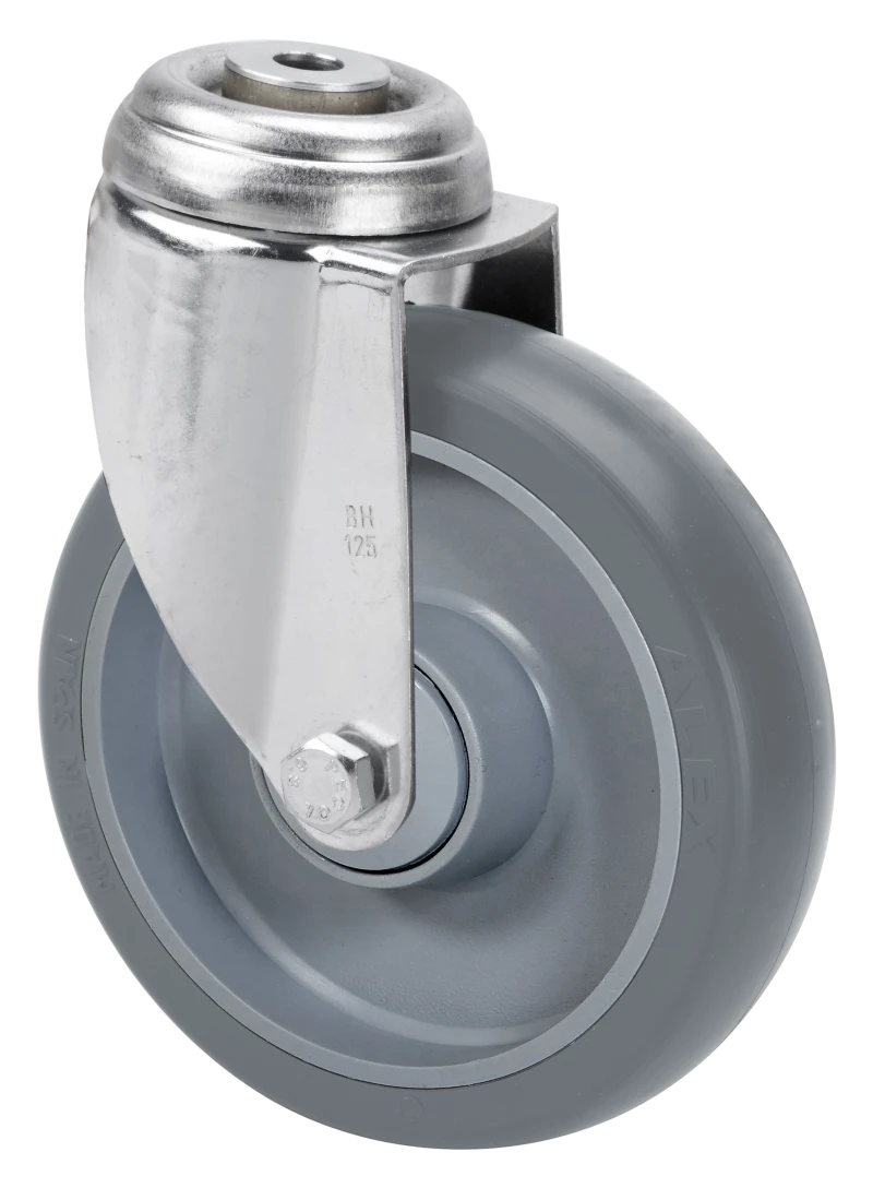 Ruedas de goma gris inyectada. Especialmente indicadas para soportar cargas hasta 100 Kg.