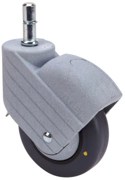 Fabricada en poliamix reforzado Aros: núcleo de poliamix y banda de goma o material especial conductivo Freno ergonómico redondeado con retorno integrado Soporte con espiga lisa o roscada, con y sin freno Color personalizado opcional.