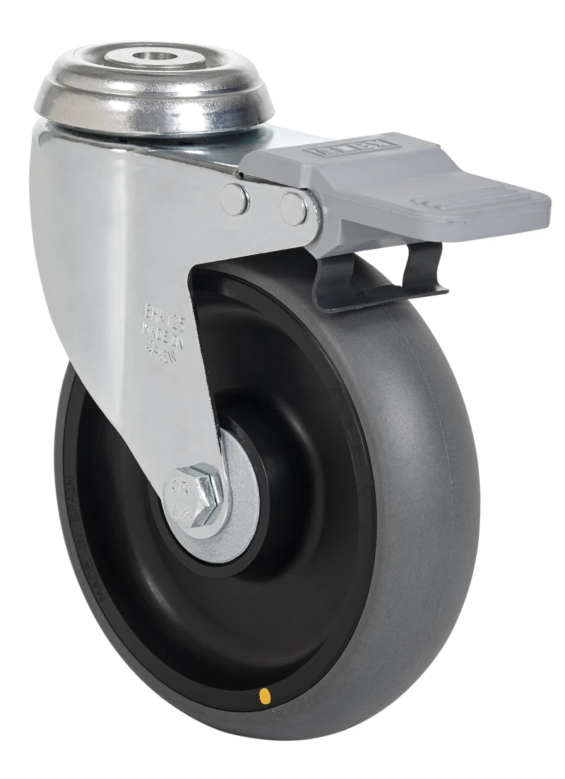 Ruedas de poliuretano gris conductivo. Especialmente indicadas para soportar cargas hasta 100 Kg.