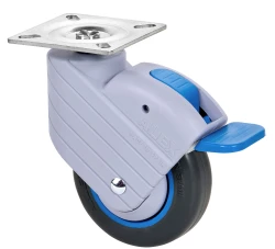 Ruedas de poliamix y goma negra. Especialmente indicadas para soportar cargas hasta 40 Kg. Nuestra gama de ruedas de la serie HP-PGI está recomendada para los sectores de media capacidad de carga. Su uso es aplicable en: expositores, muebles, taburetes, restauración, hospitales, útiles, portagoteros, mobiliario clínico sanitario, goteros, carros de limpieza.