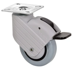 Ruedas de poliamix y goma gris. Especialmente indicadas para soportar cargas hasta 40 Kg. Nuestra gama de ruedas de la serie HP-PGI está recomendada para los sectores de media capacidad de carga. Su uso es aplicable en: expositores, muebles, taburetes, restauración, hospitales, útiles, mobiliario clínico sanitario, goteros, carros de limpieza, portagoteros.