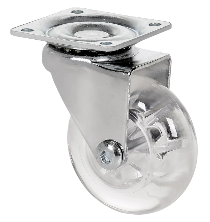 Nuestra gama de ruedas de decoración BDT con centro de policarbonato y vandaje transparente de poliuretano, está recomendada para muebles de interior, mesitas, muebles auxiliares, expositores, decoración, cajas apilables, vitrinas, taburetes, bricolaje, equipos de belleza y peluquerías, espacios comerciales, interiorismo, tiendas de moda, muebles de diseño, hogar.
