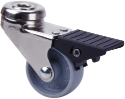 Ruedas de polipropileno gris especialmente indicada para soportar altas cargas hasta 40 Kg.