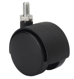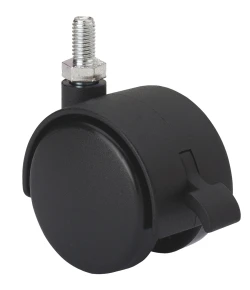 Soporte de plastico para albergar las dos ruedas gemelas. Fijaciones: platina,espiga roscada, espiga con anilla, espiga lisa, fijación para cantos. Cubierta: Negro, gris, latonado,cromado. Aro: Bandaje en polipropileno negro o gris, poliuretano gris.