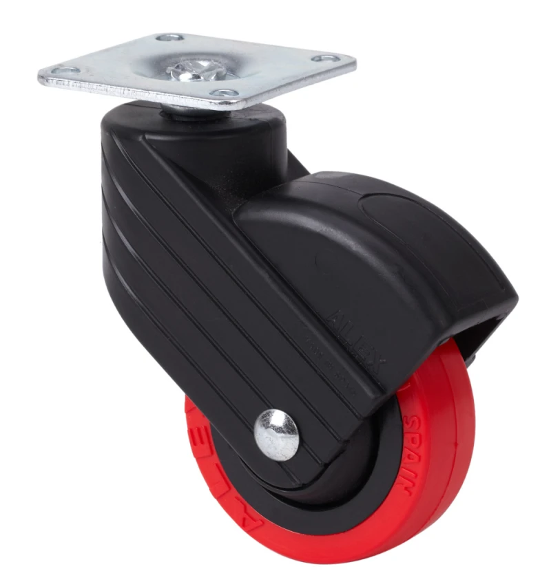Ruedas de poliuretano inyectado rojo, especialmente indicada para soportar altas cargas hasta 30 Kg.