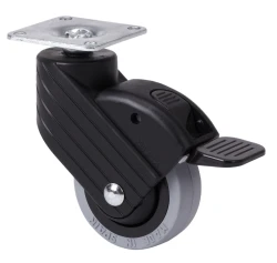 Soporte con placa y espiga roscada, con y sin freno. Freno ergonómico redondeado con retorno integrado. Fabricadas en poliamix negro reforzado. Diseñadas epecialmente para el sector mobiliario y restauración. Color personalizado opcional. Fabricadas según normas europeas EN 12528.