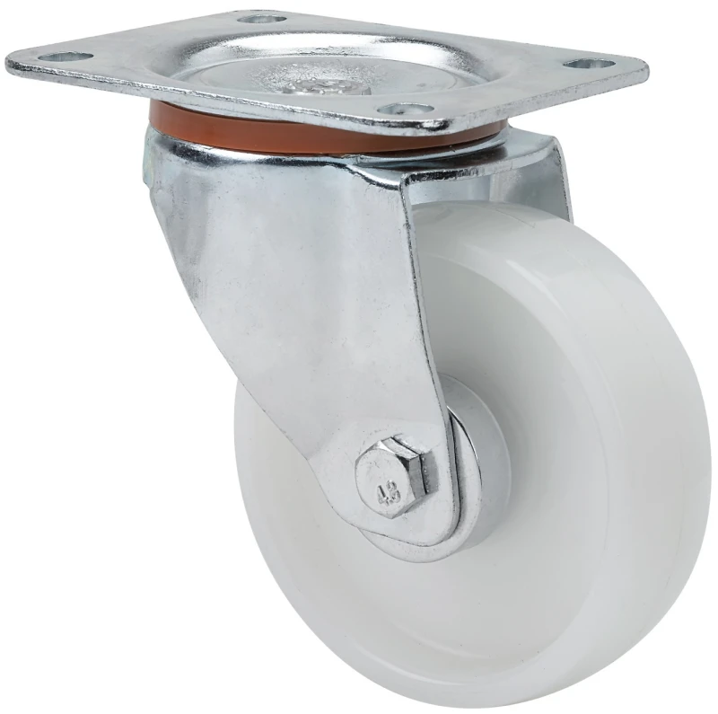Ruedas de polipropileno blanco, especialmente indicada para soportar cargas hasta 280 Kg.