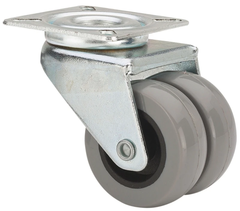 Ruedas dobles de poliamida gris. Especialmente indicadas para soportar cargas hasta 80 Kg.
