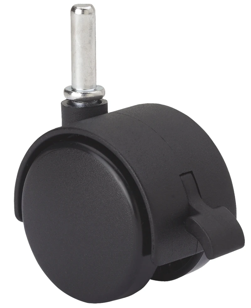 Fijaciones: Pletina giratoria, espiga roscada y espiga lisa o con anilla. Con y sin freno. Aro: Polipropileno negro. Para muebles auxiliares, expositores y electrodomésticos.