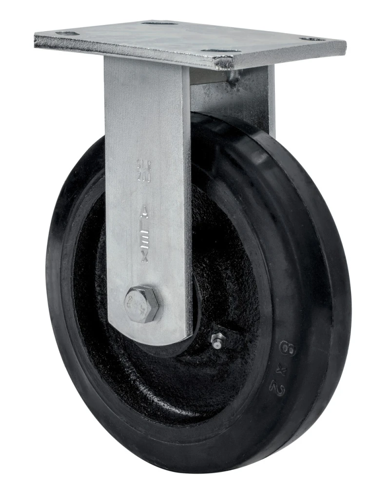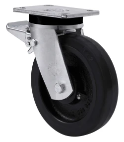 Ruedas con núcleo de acero y banda de goma negra natural, especialmente indicada para soportar altas cargas hasta 600 Kg.