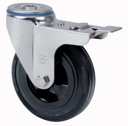 Ruedas de goma negra natural. Especialmente indicada para soportar cargas hasta 215 Kg.