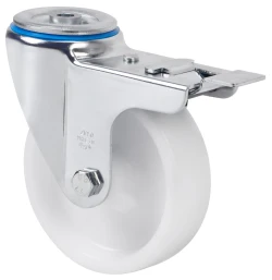 Rueda de poliamix blanco, especialmente indicada para soportar altas cargas hasta 400 Kg.