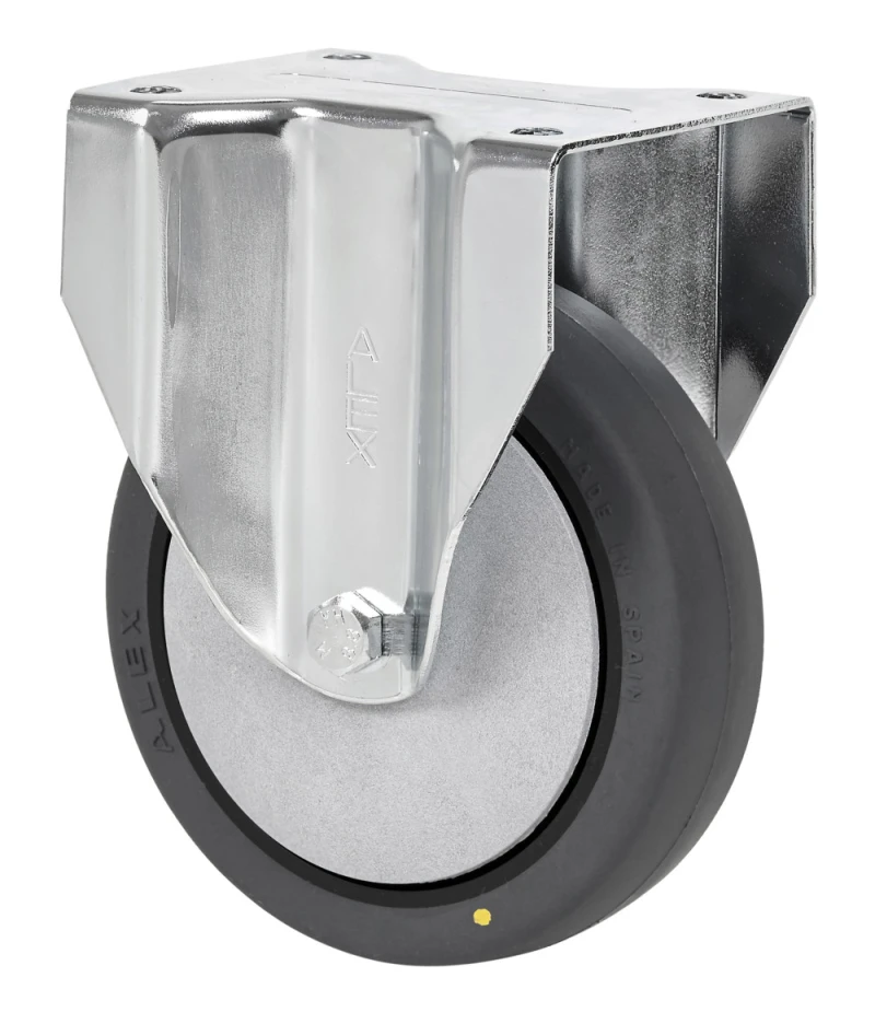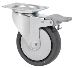 Ruedas conductivas con núcleo de polipropileno y banda de poliuretano gris inyectado. Especialmente indicada para soportar cargas hasta 200 Kg.