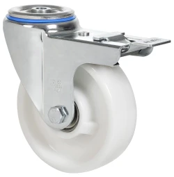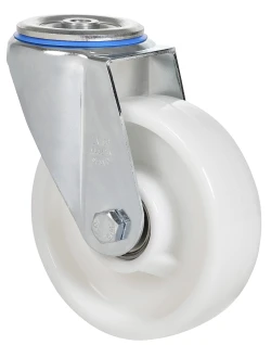 Rueda de poliamix blanco, especialmente indicada para soportar altas cargas hasta 400 Kg.